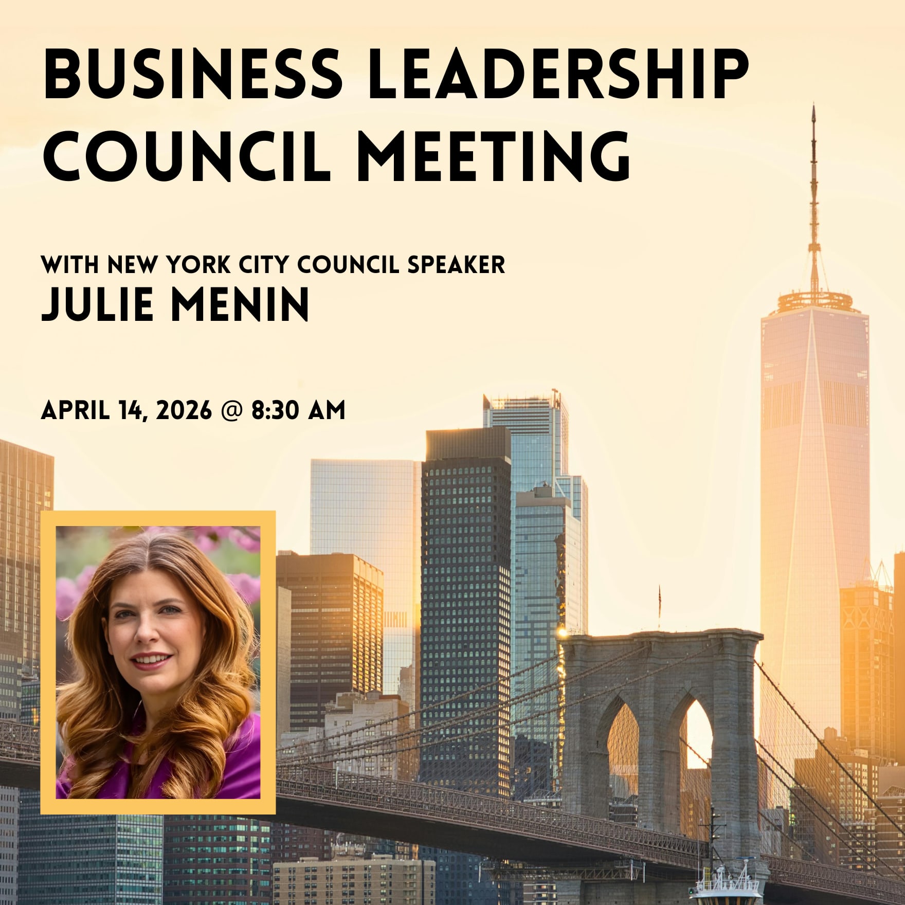 Attendees will have the opportunity to engage directly in thoughtful dialogue with Speaker Menin about leadership, advocacy, and the future of business in the city.